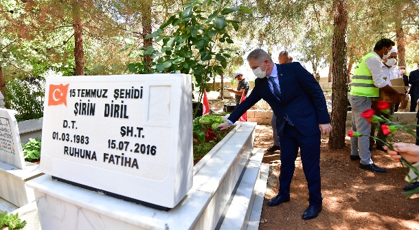 Konuşmasında; 15 Temmuz’u unutmayacaklarını ve unutturmayacaklarının vurgusunu yapan Rektör Gür, “Buradan sizden ricam çocuklarınıza anlattın, unutturmayın. 251 yıldızımız var. Bu yıldızlar gök kubbemizde ufkumuzu aydınlatmak için sürekli bize rehberdir. ‘Bizi unutmayın, unutursanız bizim gibi şehit olacak evlatlar bulamazsınız’ diyorlar bize. O yüzden unutmayacağız ve unutturmayacağız. Pandemi süreci dâhil olmak üzere sosyal mesafeye dikkat ederek, maskelerimizi takarak bugünü evlatlarımıza göstermek adına burada bulunuyoruz. Çocuklarımız olayı yaşamamış oldukları için fark edemeyecekler. Belki ne oldu ki diyecekler? Ama bizler onlara anlatacağız” dedi.