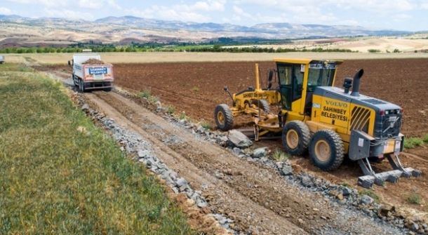 Çiftçilere buğday ve arpa tohumu, hayvan yemi, zeytin, fıstık fidanı ve canlı hayvan desteğinde bulunan Şahinbey Belediyesi şimdi de 20 köyün 162 km’lik arazi yollarını açarak çiftçinin işlerini kolaylaştırdı.